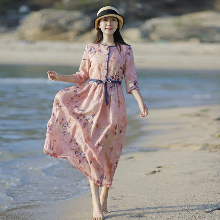 POMTOR 여름 여성 빅사이즈 플로 바캉스 롱 원피스