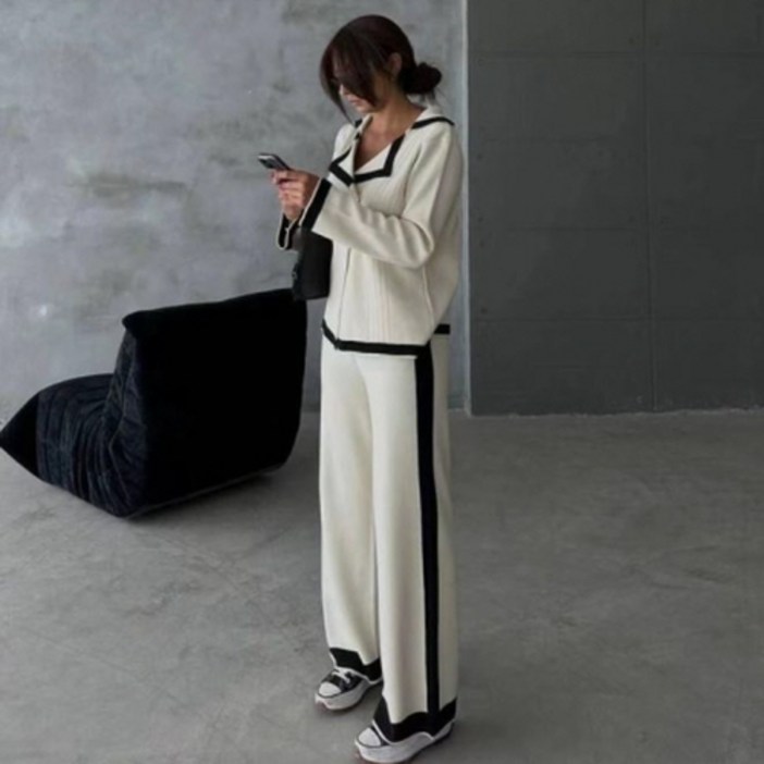뉴욕멋쟁이 시즈 배색니트밴딩팬츠세트