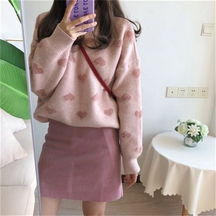 루스리더 여성 라운드넥 하트 루즈핏 보온 니트 스웨터 EW19
