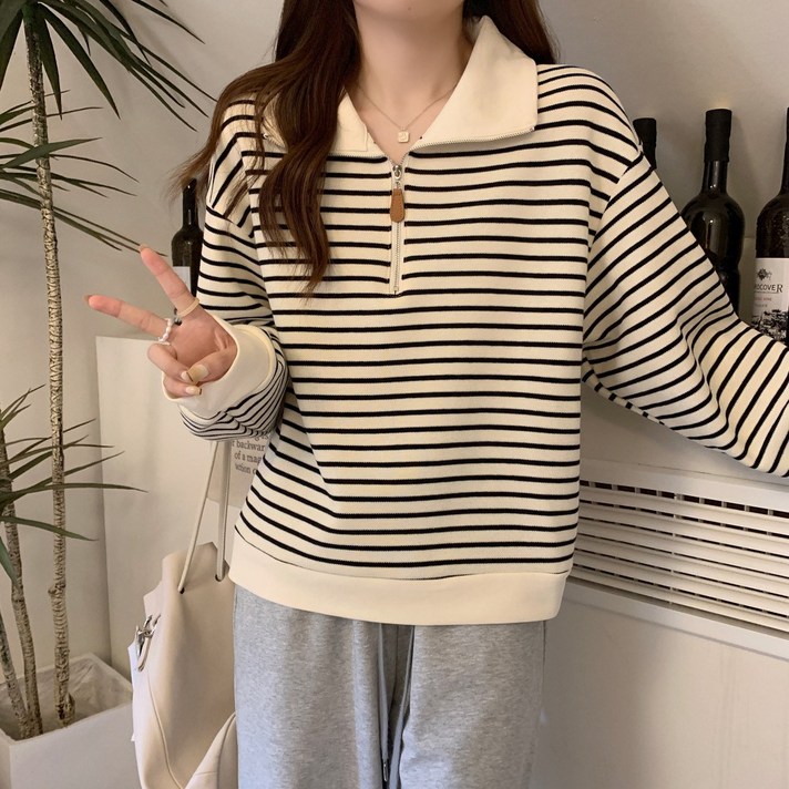 lofei 기모 반집업 스트라이프 니트 루즈핏 데일리 캐주얼 WY02