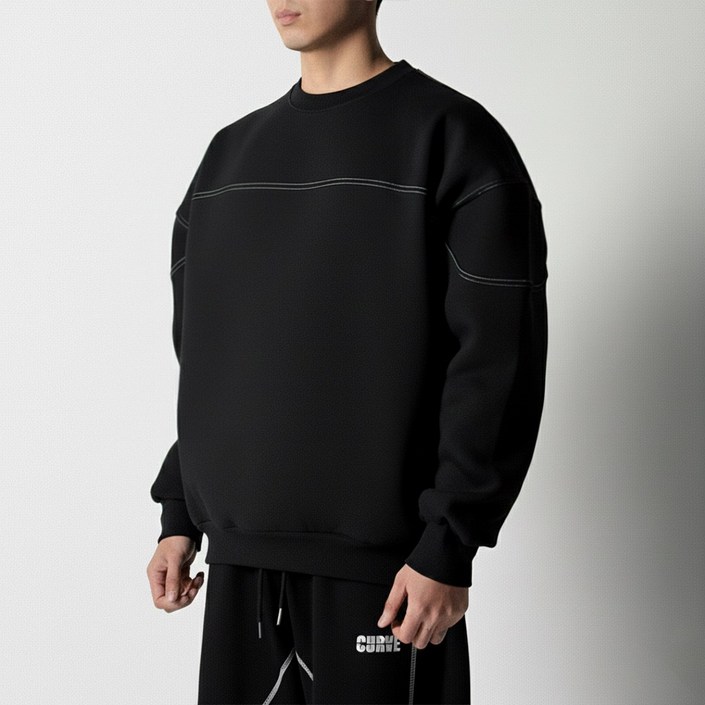 스티치 럭비 맨투맨 이중지 합포 커플 맨투맨 기모 무지 빅사이즈 오버핏 도프룸