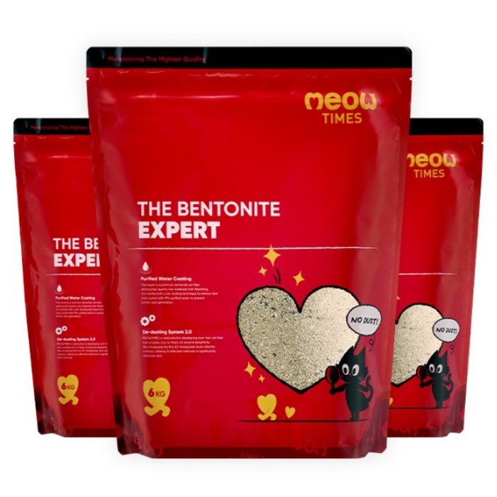 미우타임즈 더 벤토나이트 엑스퍼트 고양이모래, 6kg, 3개, 무향